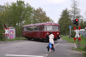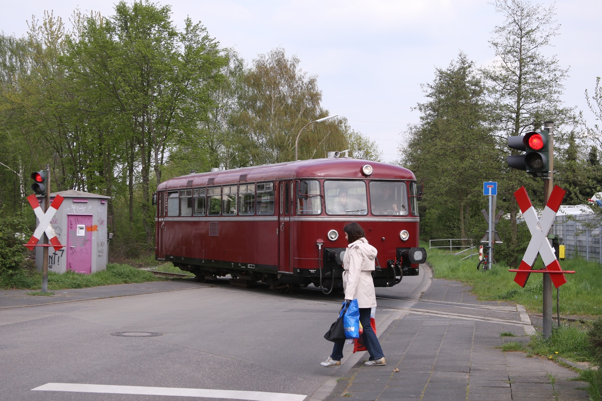 25. April 2008 - Am Bü Holzlarer Weg stand ich parat um den WEMEG 796 760-7 aufzunehmen. Leider lief mir die Frau ins Bild.